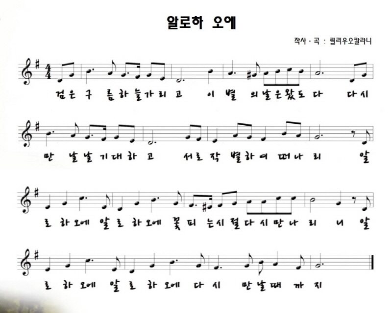▸ 알로하 오에 (한국어 번안 노랫말)